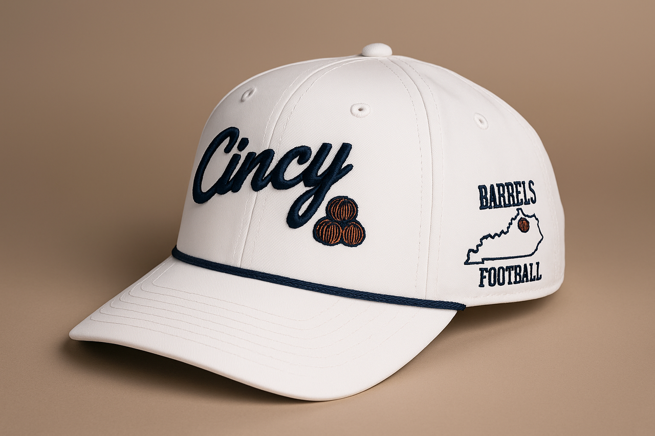 We teamed up with our friends at Cincy Hats to provide this special Kentucky Barrels Edition cap. Designed for football fans and locals alike, it’s the perfect way to rep both sides of the river.